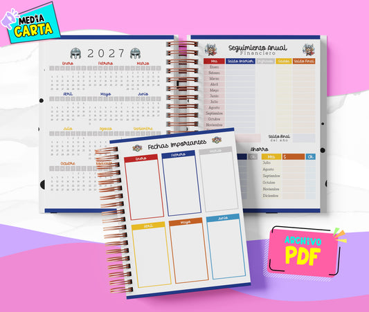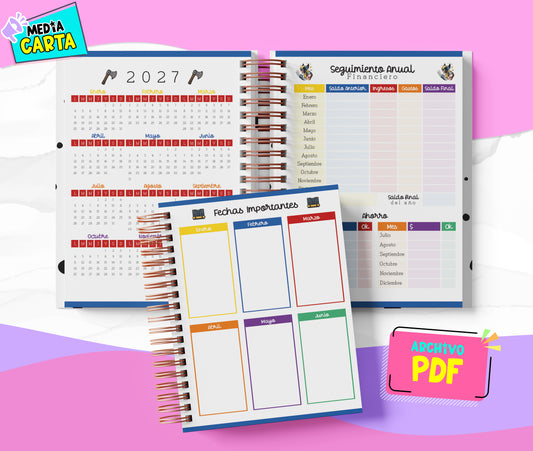 Agenda de Citas Abogados 2026 — 2 Días por Página (PDF) — 3 Colores: Rosa, Azul, Gris — Español — Medio Oficio 17×21.5 cm (≈6.69"×8.46") — 258 págs