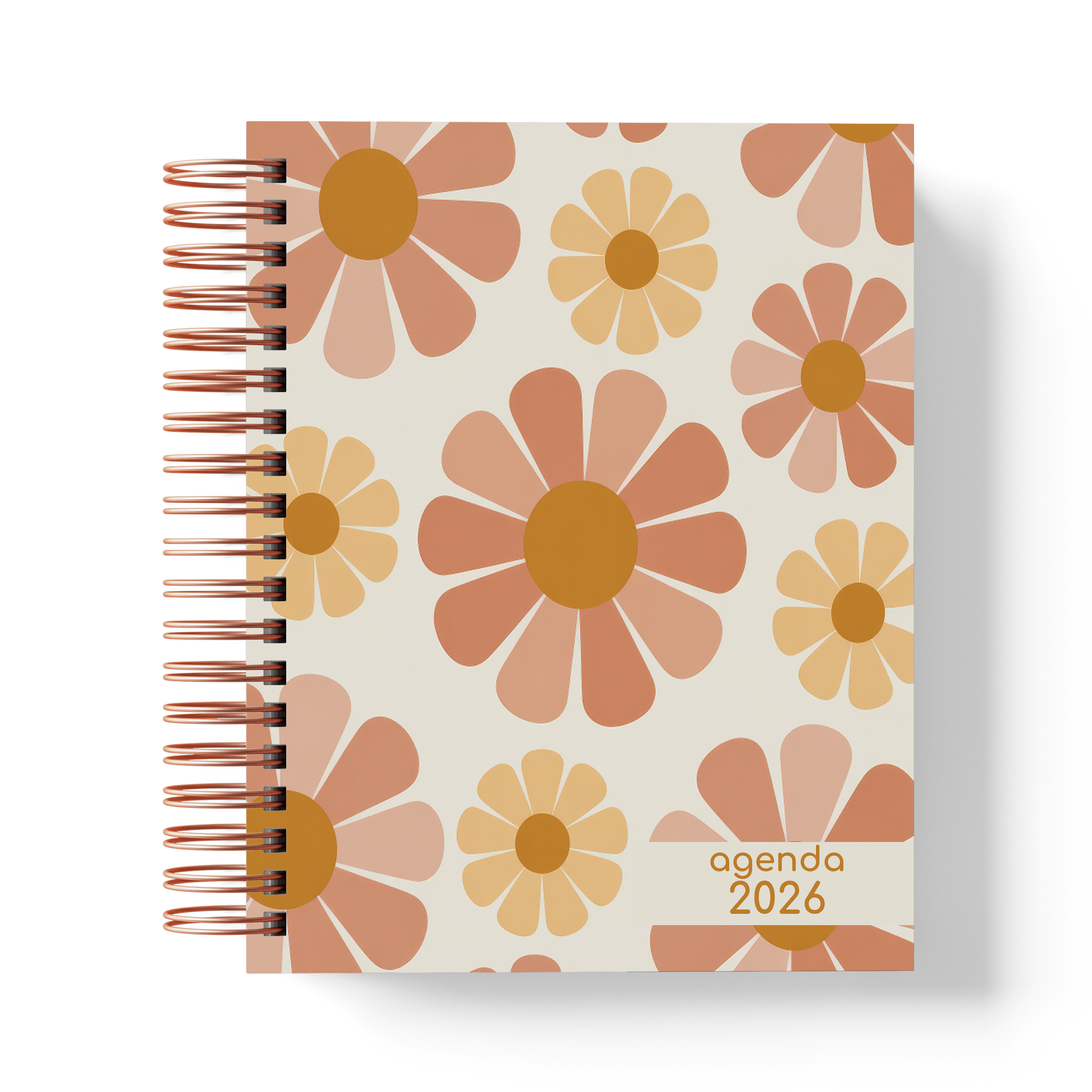 La estética retro-minimalista en tonos pastel y florales aporta armonía, mientras que la estructura funcional te ayuda a optimizar tus días.