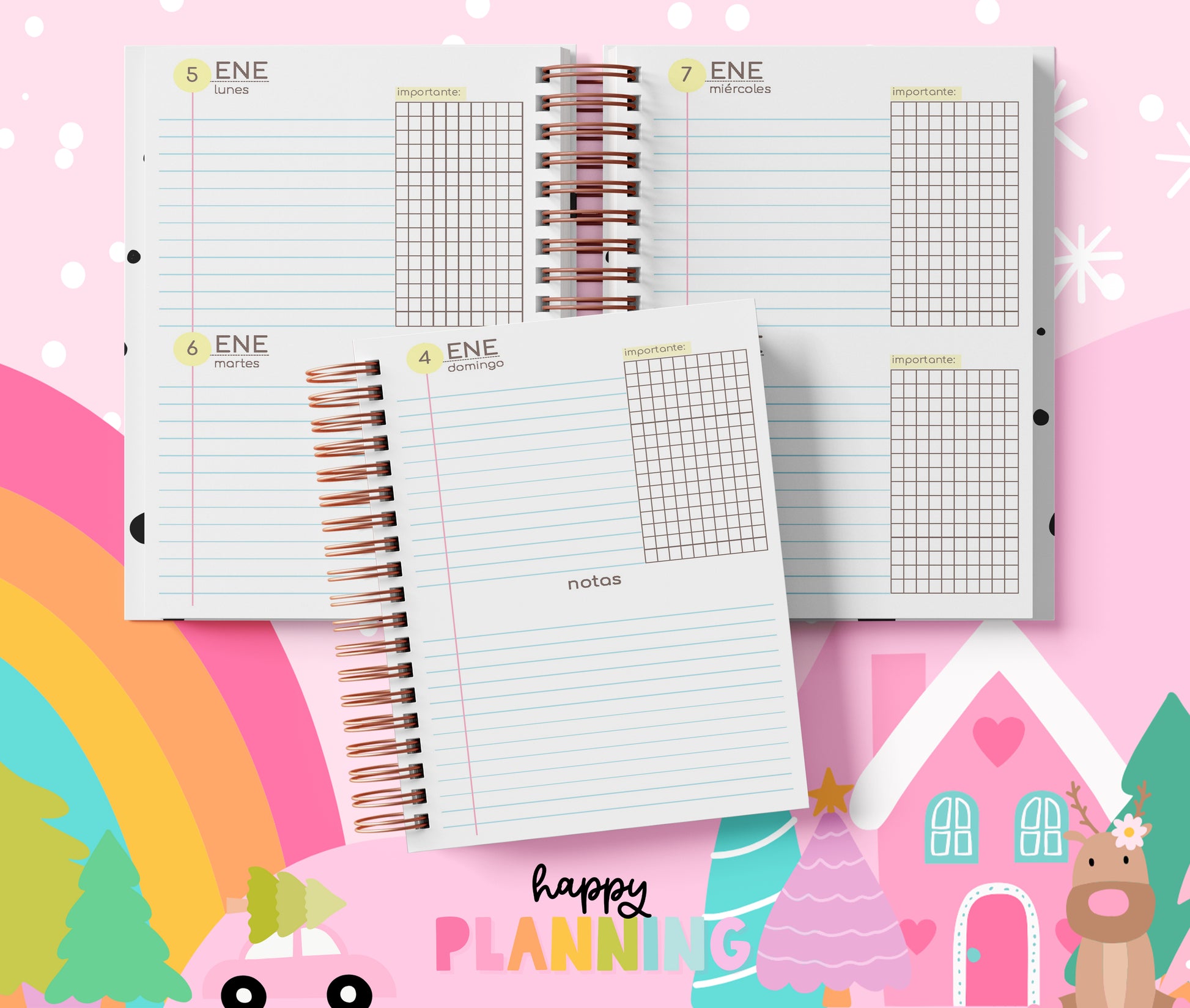 A diferencia de los planificadores con horarios, esta versión te brinda el espacio abierto que necesitas para anotar lo que realmente importa cada día: