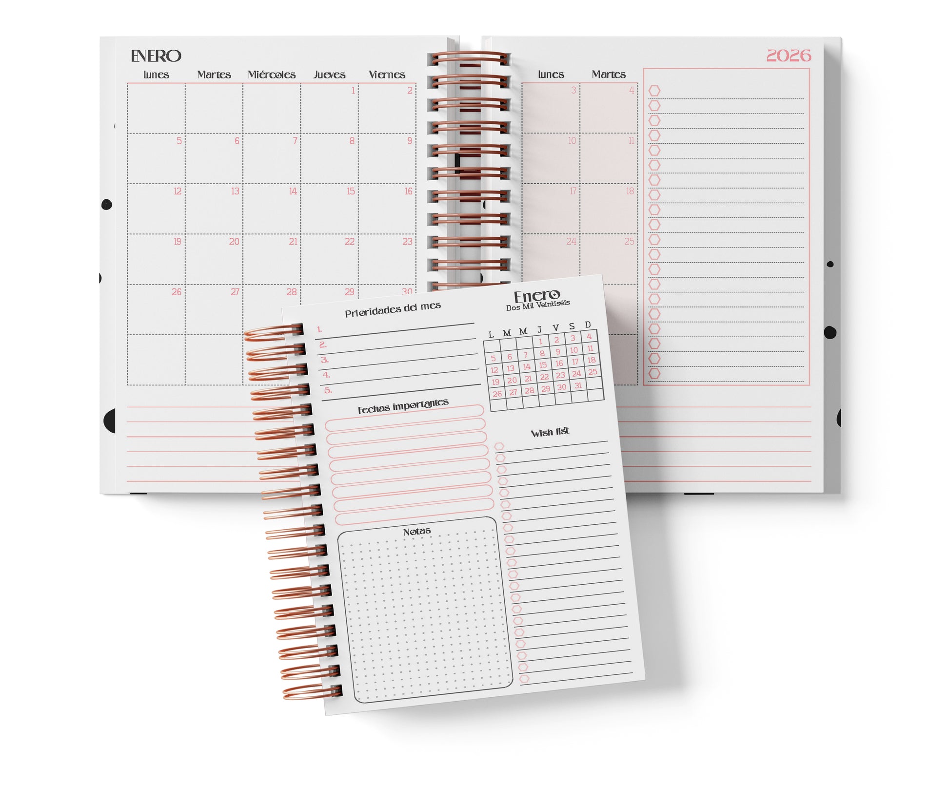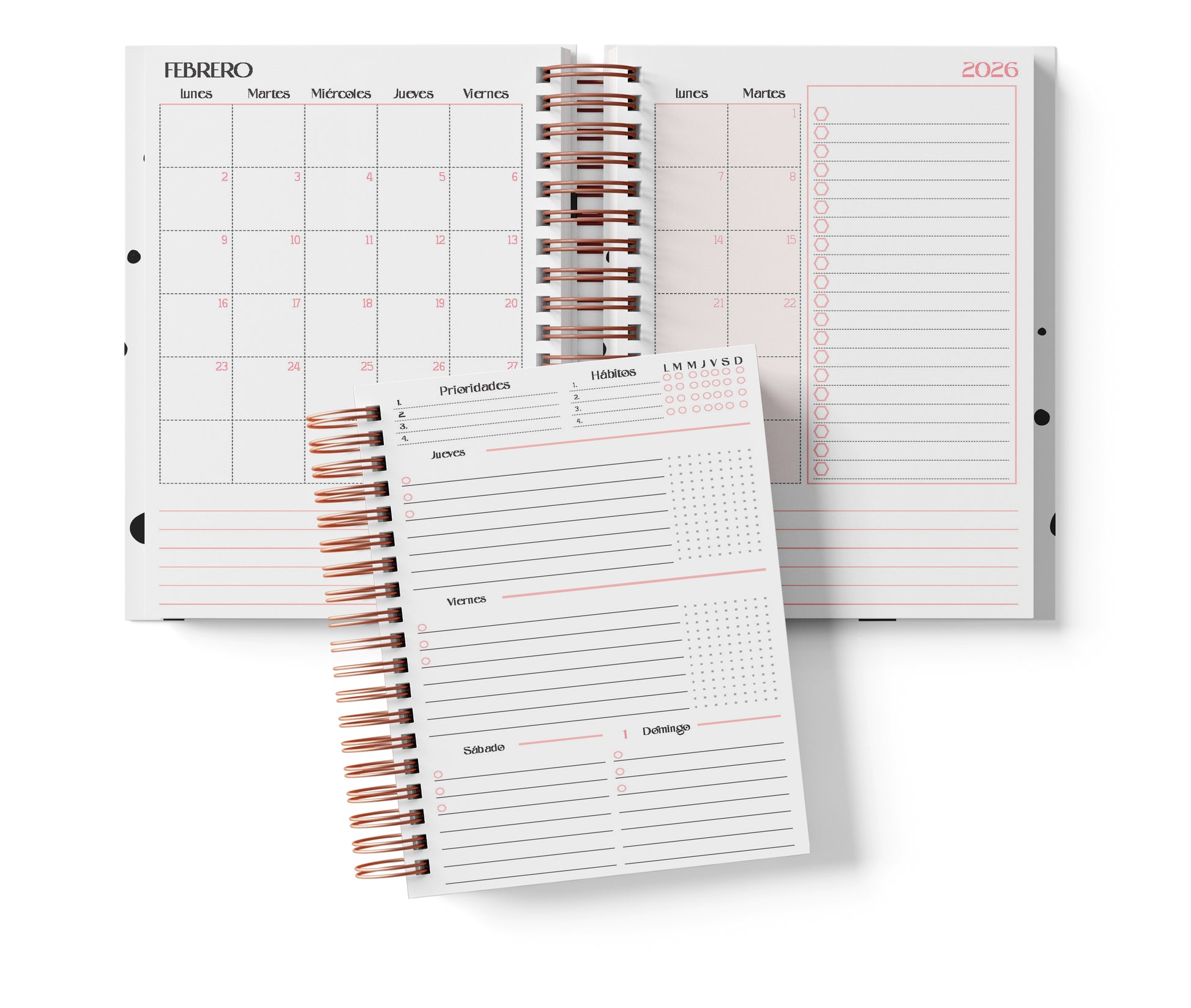 Estética minimalista rosa: limpia, elegante y sin distracciones para mantener el foco durante todo 2026–2027.