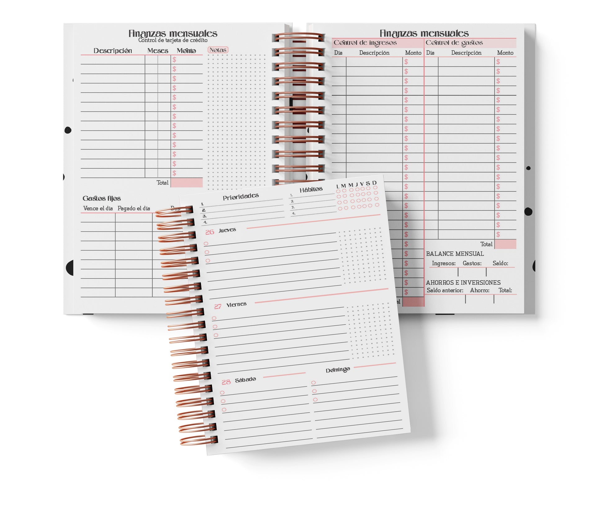 Claridad financiera con plantillas listas para registrar gastos, ingresos y ahorro.