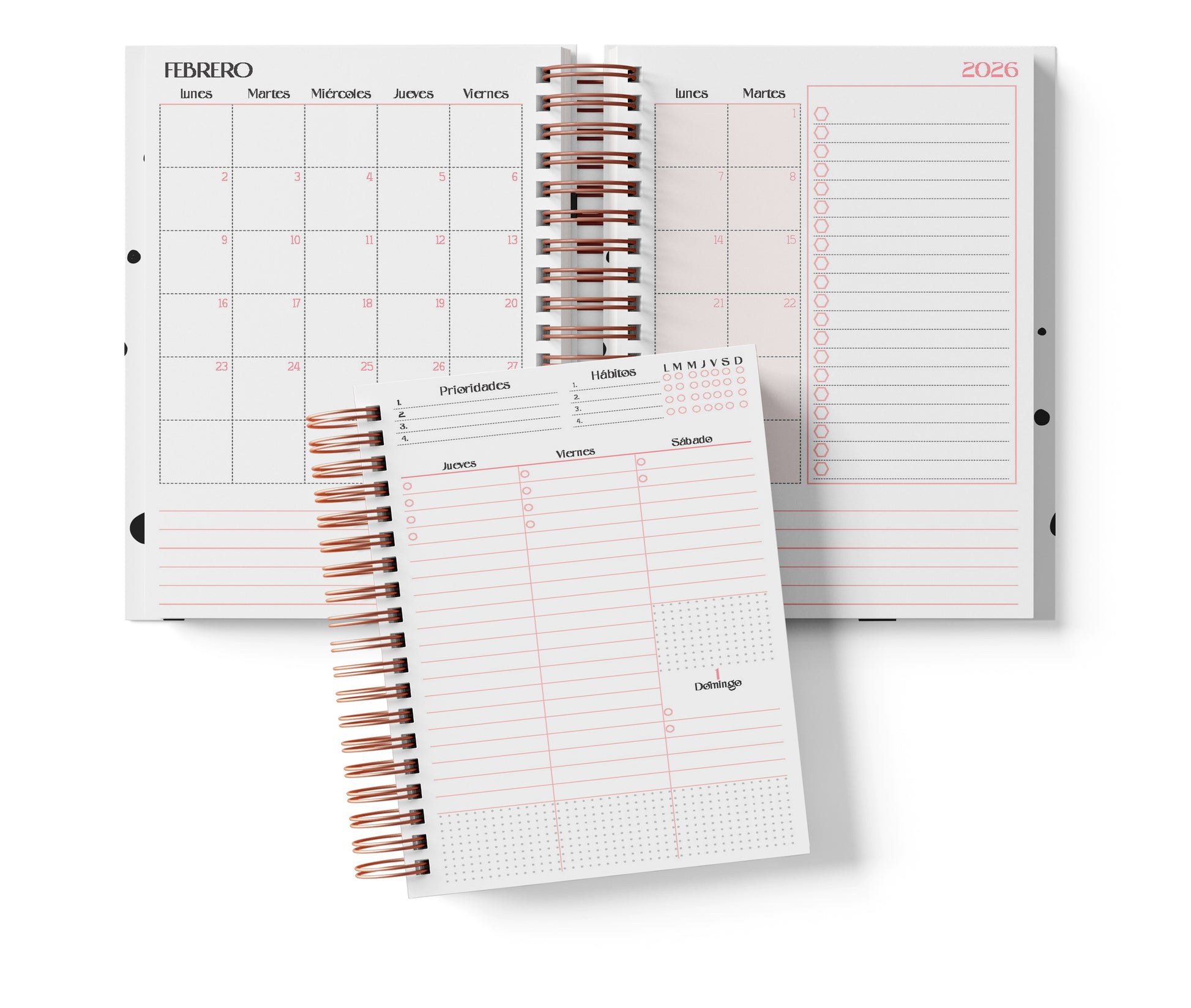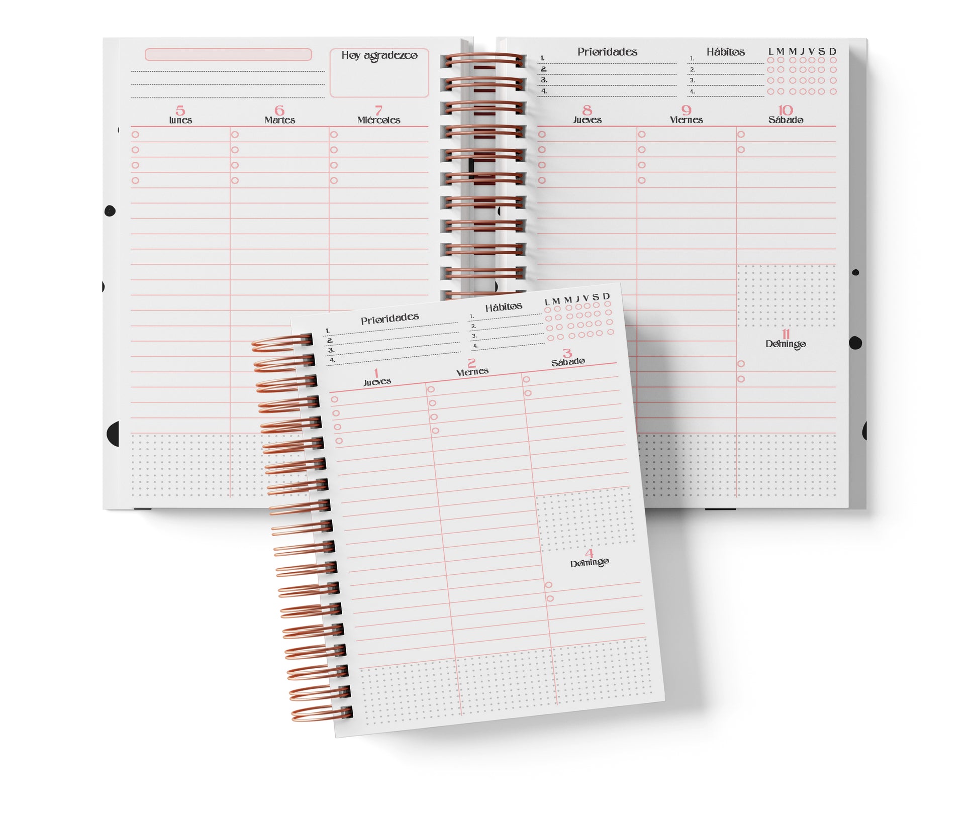 Más productividad con una agenda semanal minimalista que separa prioridades de pendientes y facilita el control de hábitos.