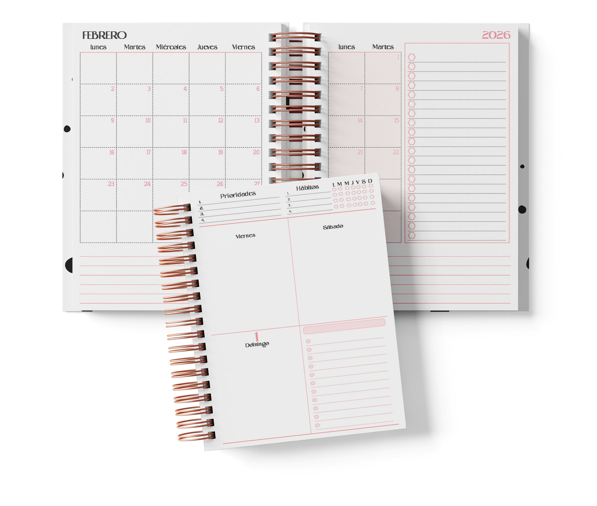 ¿Quieres una agenda semanal digital clara y bonita para organizar tu año sin complicarte? Esta agenda en español de estilo minimalista rosa concentra todo lo que necesitas para tu organización personal y productividad en un único PDF imprimible tamaño media carta (14×21.5 cm | 5.5×8.5 in). Úsala en tu tablet o imprímela en casa: la estructura limpia facilita escribir, revisar y avanzar.